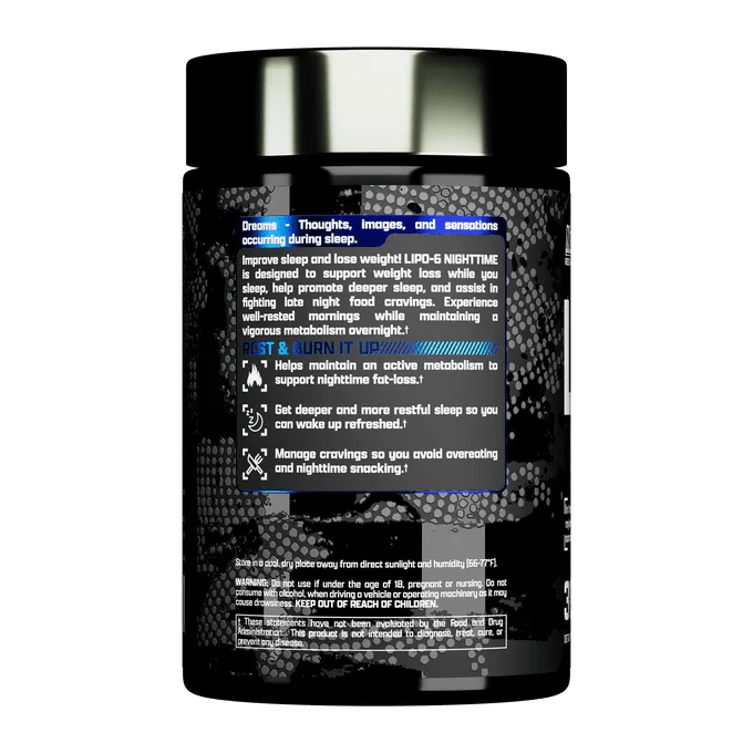 Whether you struggle with nighttime cravings, poor sleep, or a slow metabolism, Lipo-6 Nighttime is your ultimate solution for round-the-clock fat loss and optimal rest.
