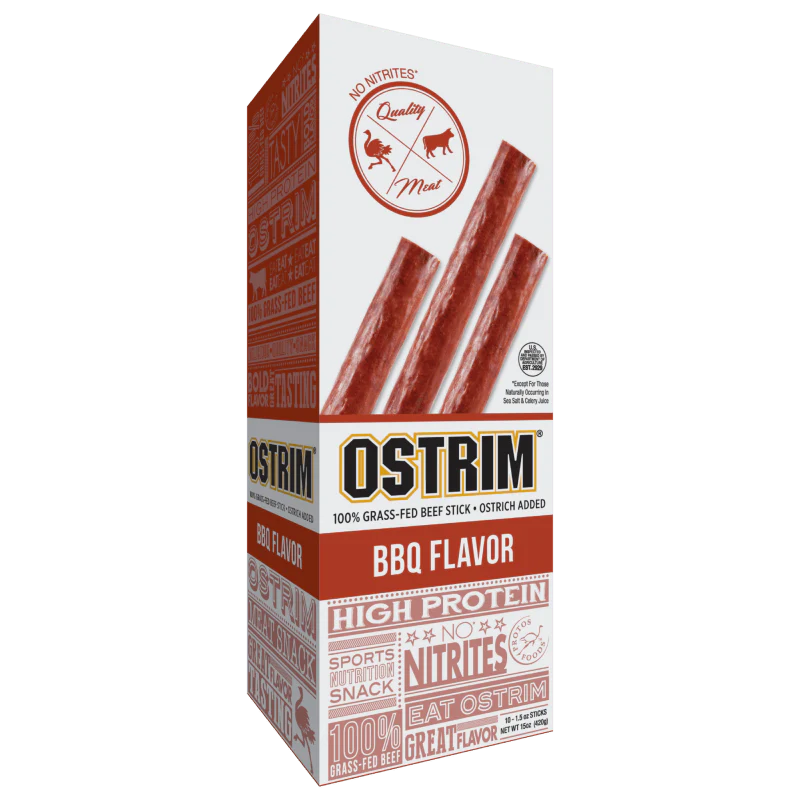 Stay Strong. Stay Satisfied. Snack Smarter. Order Ostrim Beef & Ostrich Sticks 10/pk today, the high protein, low fat meat snack that delivers flavor, energy, and clean nutrition